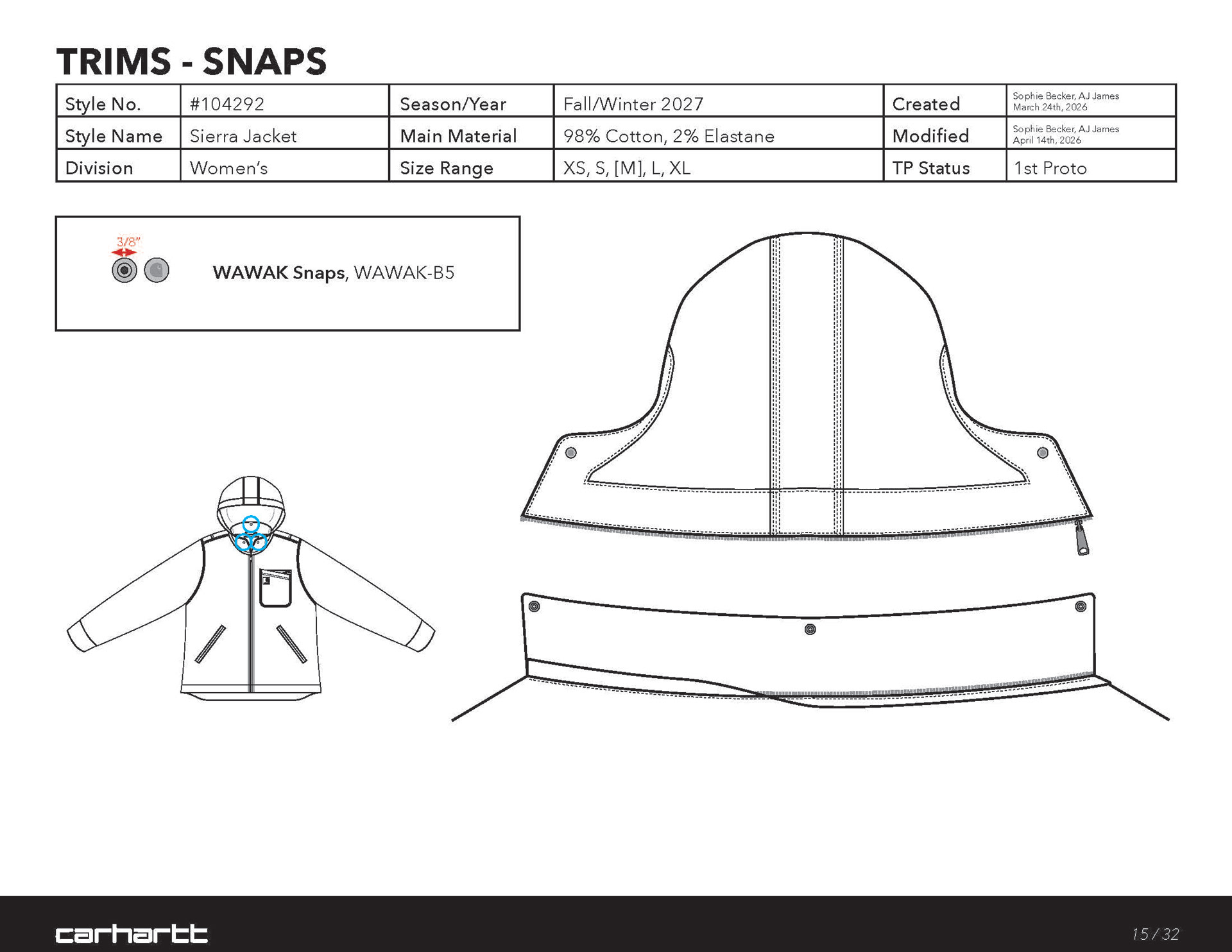 We retained the collar, sleeve placket, cuffs, lightweight lining and silhouette of the prana jacket, and the bi-swing back, arm articulation, interior pockets and tougher shell material of the carhartt jacket. we also made the hood removable.
