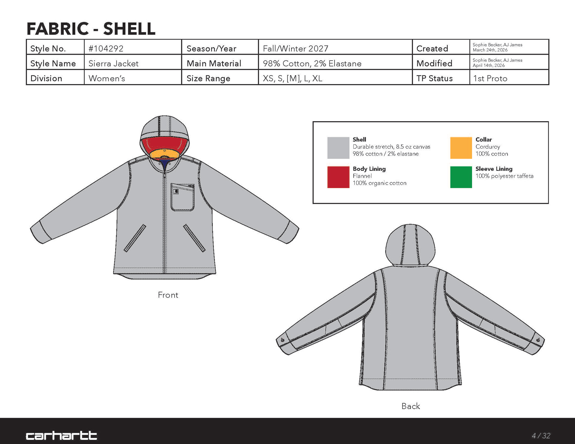 This project challenged students to take an existing product and conceptualize a gen 2 redesign. Our team decided to create a lightweight women's work jacket. This was not just an update to an existing jacket, but a mash-up of our favourite elements from two different jackets.